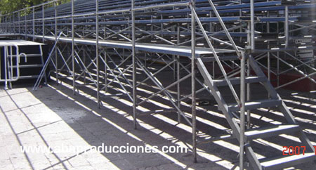 Somos especialistas en Gradas para todo tipo de eventos en la Republica Mexicana, pero manejamos también todo tipo de muebles auxiliares para tu evento, vallas, carpas, templetes etc. hasta sillas, butacas, unifilas, etc.